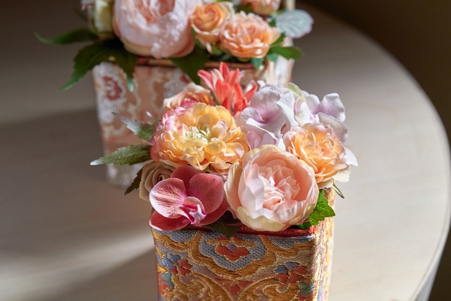 ☆☆☆☆☆☆☆☆☆☆☆☆☆ 蝶が舞う百合の香り美華な花箱アレンジ【左】 ☆☆☆☆☆☆☆☆☆☆☆☆☆ 花箱アレンジをプレゼントに いかがでしょうか? 日本の伝統工芸である 着物の帯と友禅紙を使用した とても贅沢なアレンジです。 本物と見違えるほど クオリティーの高い アートフラワーと組み合わせ 色味、雰囲気は京都らしさを 大事にしております。 まるで着物をコーディネートする あの、ワクワクする感じで ひとつひとつ丁寧に制作いたします。 【花箱アレンジに使っている花や葉】 ・ユリ ・バラ いろいろ ・スカビオサ ・オンシジューム ・アジサイ ・スイトピー ・小花 ・バラの葉 ・観葉植物の葉 ・その他 葉っぱいろいろ 【 商品説明 】 ピンクが愛らしい 百合の花が華美な 花箱アレンジです。 外寸 13cm×13cm×13cm(高さ) 箱のサイズ 8cm×8cm×8cm 花や葉は、アートフラワーを 使用しております。 アートフラワーは 本物のお花と見違えるほど クオリティの高いものを 厳選しております。 ぜひお手元にて お楽しみいただけましたら 幸いです。 【形状とご用途】 置き型の フラワーアレンジメントです。 お部屋の彩りの一つとして いかがでしょうか… ご用途は限りなく… プレゼント、お見舞いにも 選んでいただけます。 【お送り】 お送りの際はSDGsを大切にし 薄紙でラッピングいたします。 写真にございますラッピングを ご覧ください。 ラッピングに関しては追加料金は いただいておりません。 段ボールの箱に緩衝材を敷き ラッピングした花箱アレンジを 入れてお送りいたします。 【注意いただきたいこと】 ホコリが付いたら 優しくはらい落として ください。 色褪せないよう 直射日光の当たらない ところに、飾ってください。 水をあげる必要は ございません。